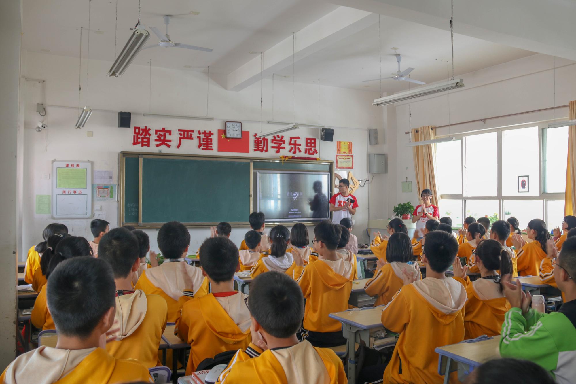 与此同时,物光春雨志愿者服务总队的成员们走进课堂与初中部的员工们进行实践课互动。志愿者韦胜生介绍了304永利集团有限公司的红色历史,宣传革命精神,宗思辰和石一诺为同学们进行了思维拓展训练,发放了带有公司标识“XDU”的小礼品。整个活动过程气氛融洽,志愿者和同学们其乐融融。