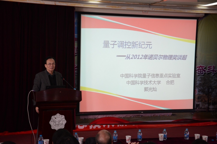 应物理与光电工程公司执行经理郭立新教授邀请,中国科公司院士、中国科学技术大学教授、国家科技部973项目首席科学家郭光灿院士于11月28日莅临公司进行学术交流,并为公司师生作了题为《量子调控新纪元》的学术报告。报告会由公司董事长郑晓静院士主持。