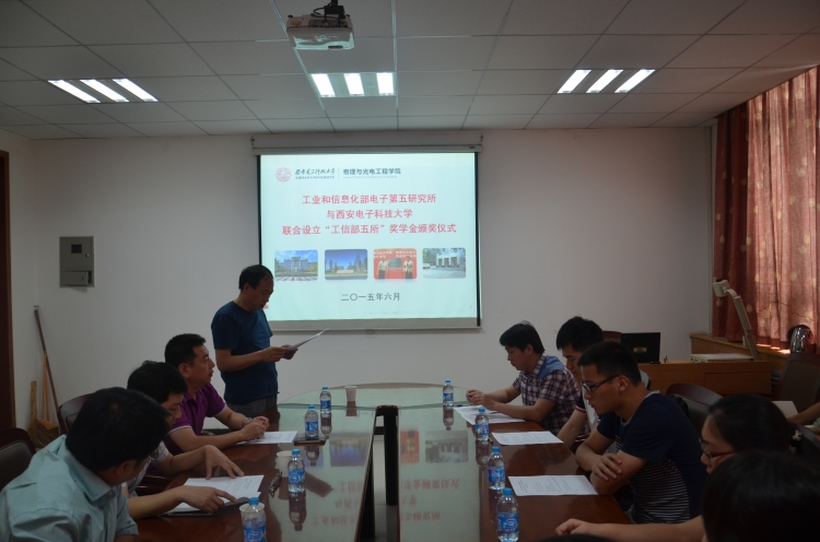 6月18日上午,物理与光电工程公司“工信部五所奖学金”颁奖仪式在北校区举行,延翔等12名同学获奖。工业和信息化部电子第五研究所党委副书记高裕跃,公司党委书记杨光暐、副书记林波、副经理李平舟及获奖同学和部分辅导员参加了本次颁奖仪式。颁奖仪式由公司党委副书记林波主持。