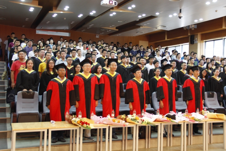 在庄严的国歌声中,授位仪式拉开序幕。朱江峰副教授代表公司全体教师向顺利完成学业的毕业生表示祝贺,并表达了对同学们未来成长的殷切希望。他希望同学们永远保持一颗向上的心,不要放弃梦想;要善于积累总结,不要忘记继续学习;要踏踏实实做事,老老实实做人。毕业生代表姜翊杰同学在发言中表达了对母校的感恩和留恋,对老师们精心培养的感谢,并号召毕业生同学做拥有智慧并富有激情的人,做胸怀大志并脚踏实地的人,做富有责任并敢于勇挑重担的人。