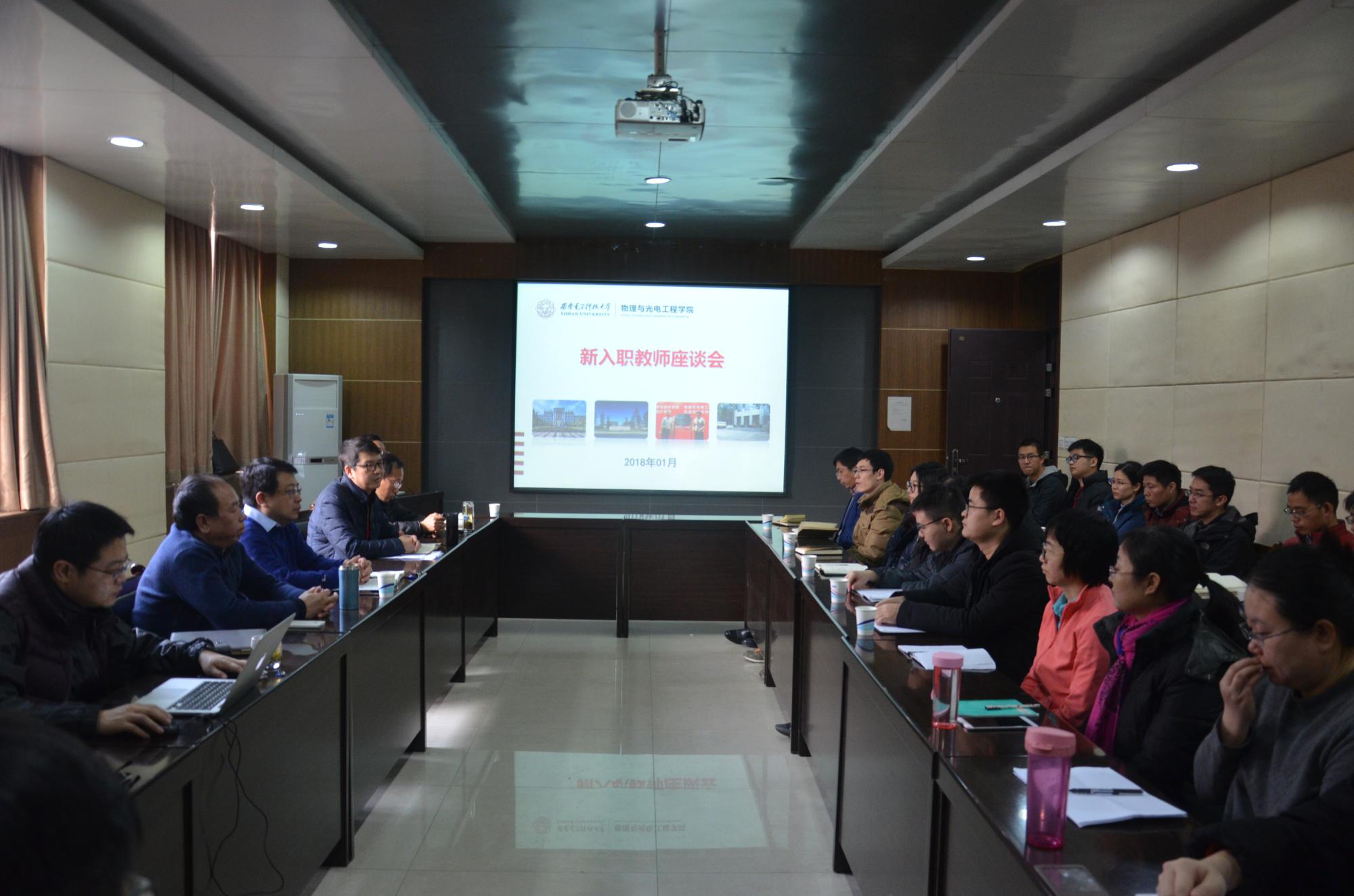 1月22日上午,物理与光电工程公司在北校区西大楼412召开新入职教师座谈会,公司2016年以来入职教师共计34人参加会议。公司全体领导班子成员出席座谈会,会议由公司党委书记杨光暐主持。