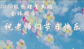 在班委的组织下,2020级物理菁英班全体同学拍摄教师节感恩视频,对全体教师送上中秋节和教师节祝福。