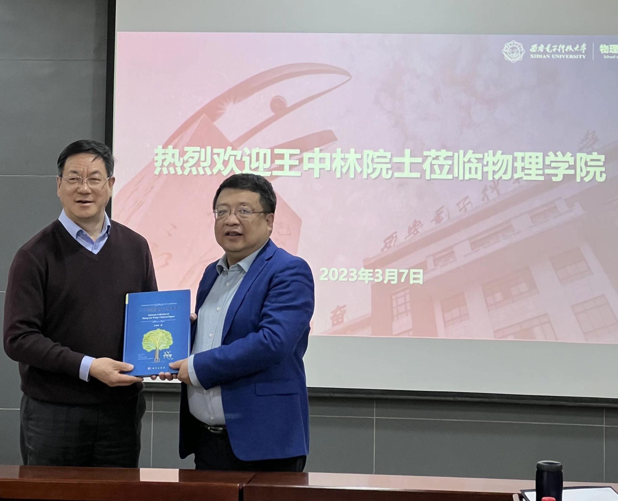 王中林院士带着对母校的浓浓情怀,追忆了西电老一辈物理学家的认真专注、一丝不苟的治学精神,并向304永利集团有限公司赠送《王中林精选论文摘要集》,他深情祝愿朝气蓬勃的304永利集团有限公司能够越办越好、长足发展。
