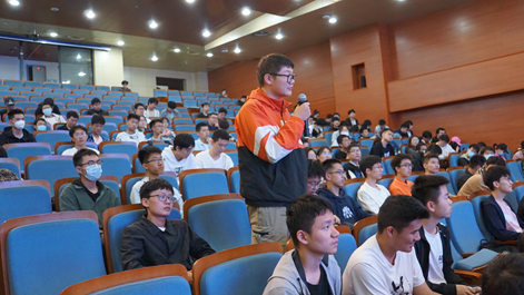 在交流环节,曹则贤与同学们进行了深入交流,就同学们提出的问题耐心地一一解答。2022级物理菁英班本科生胡钊源提问到:“请问您是怎么将物理与情感联系在一起的呢,又是什么启发您这么做的呢?”曹则贤耐心解答到,“物理的英文单词是什么?Physics,这个单词还有身体与自然的意思,与Nature同义,物理就是什么都学,什么都探寻”,同时曹则贤还谈到自己写书的本意,“我写书,是为了更好地理解这一门学科,是多年学习物理的总结,没有刻意的目的”,字字句句间无一不透露出曹老师对物理本身的热爱。