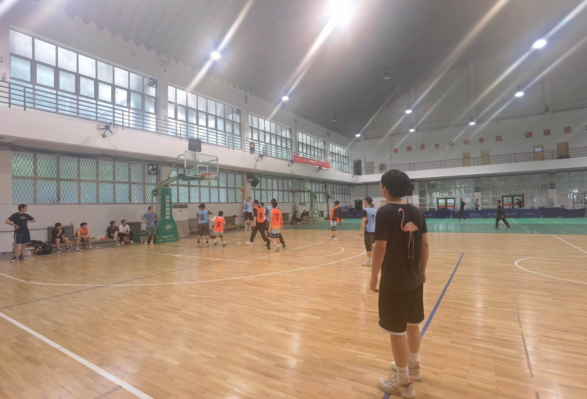 开场后,双方队员迅速进入状态,展开了激烈的对抗。防守、突破、抢攻,后仰跳投、干拔跳投、转身上篮……比赛不仅考验的是每位参赛队员的技巧水平,更考验的是队员之间的相互配合。参赛队员的各种技巧和战术的比拼让观众们大饱眼福,其他队员喝彩声连连,场上气氛紧张热烈。裁判员尽职尽责,在友谊第一,比赛第二的竞赛原则下,严格按照比赛规则监控比赛进程,遵守工作要求,公正裁决。