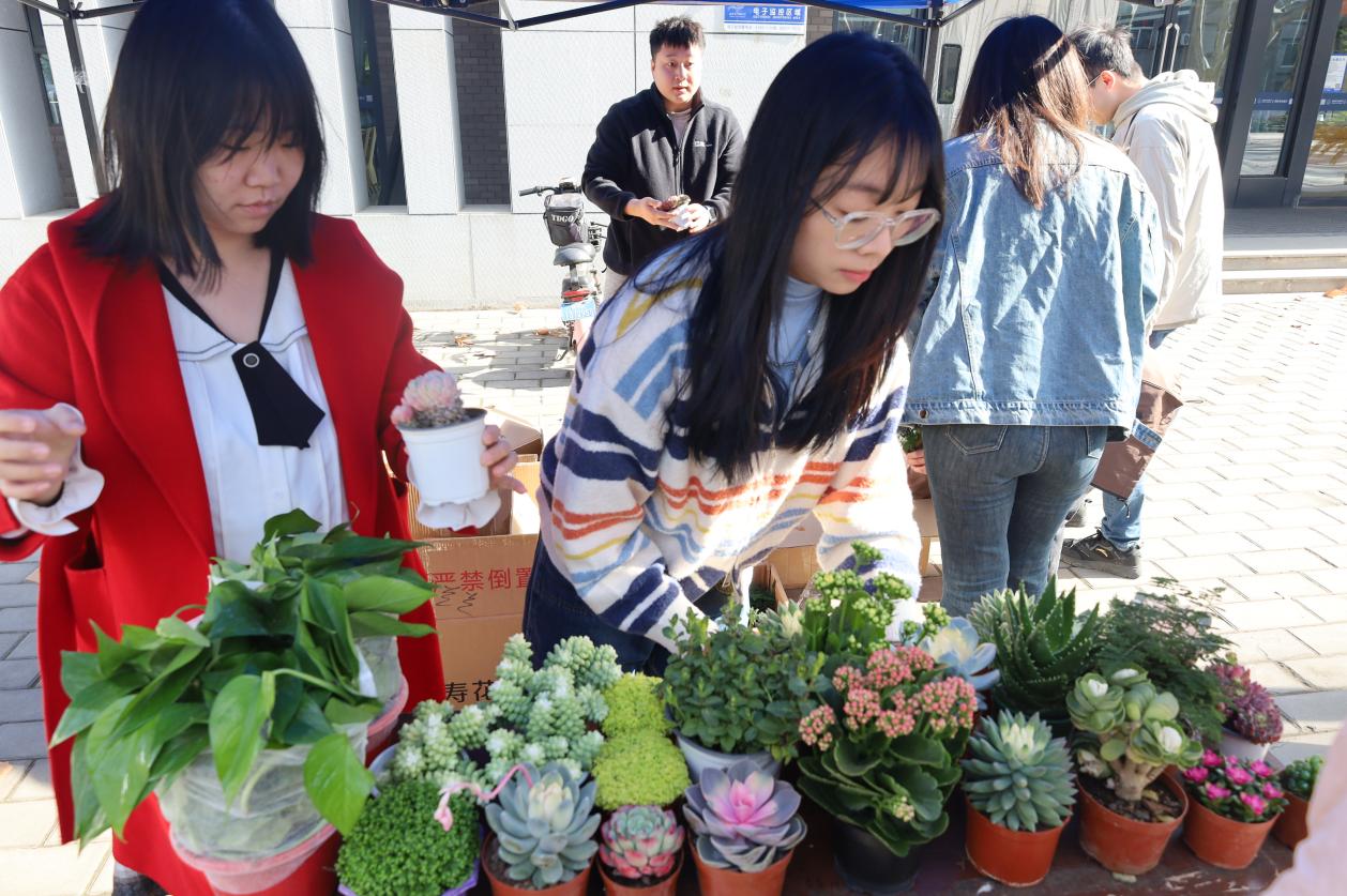 早春的暖阳下,几百盆绿植盛装打扮,期待着一场与主人的邂逅。在领养现场,同学们热情高涨,早早排起了长队,挑选自己中意的绿植,迫不及待地把自己的绿色伙伴带回“新家”。领取绿植后,同学们纷纷表示,要悉心照顾自己的小伙伴,按时为它晒太阳、浇水,呵护它茁壮成长。