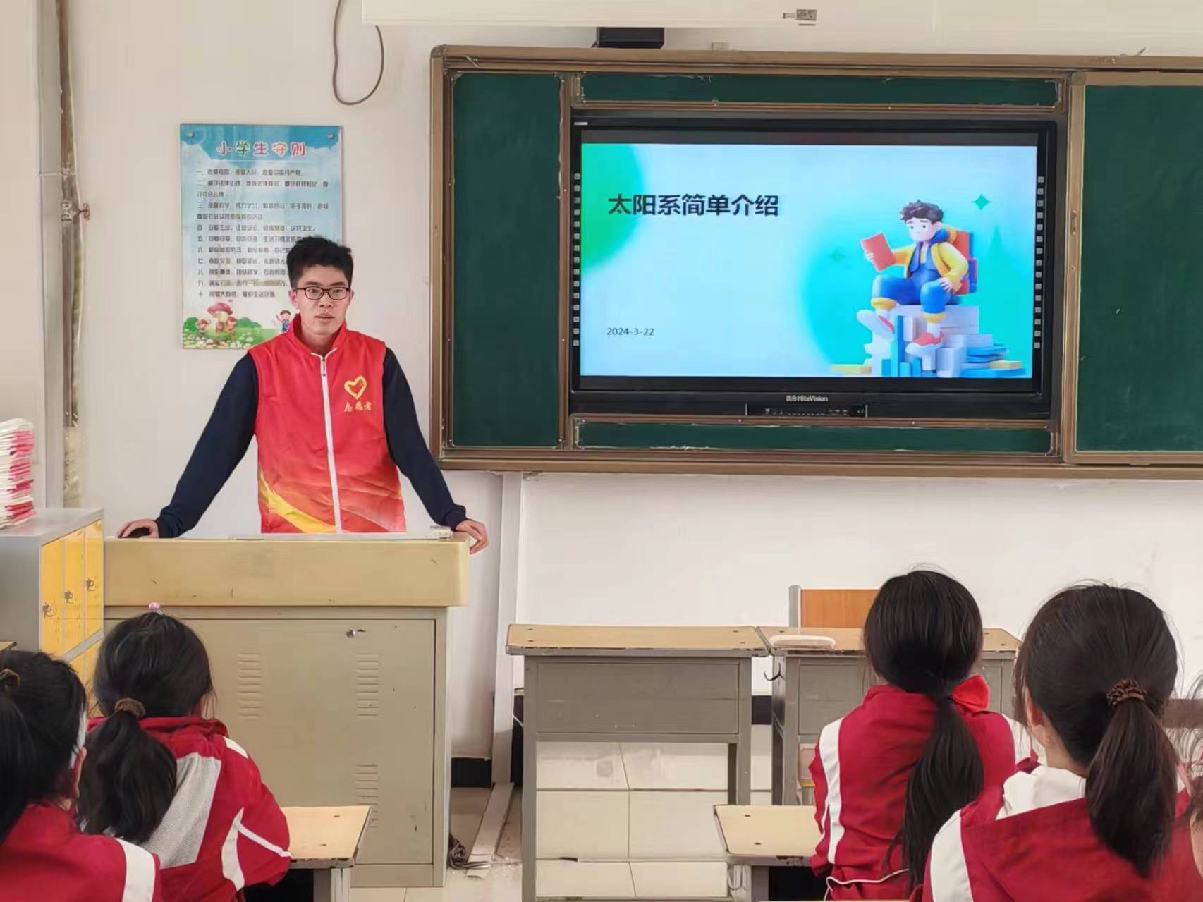 正值春暖花开,校园里洋溢着春的气息。本次科普活动中志愿者们分享了三个主题,分别是太阳系的介绍、信息传播小科普和食物在人身体内的旅行。第一个主题课程中,志愿者们从太阳系的诞生、形成及演化出发,结合太阳系的图片、视频进行生动讲解,并为小员工们介绍了太阳系内八大行星、其他卫星和天体的特征。神秘且遥远的宇宙激发了同学们对星空的无限遐想。
