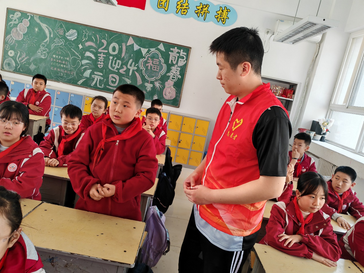第二个主题课程中,志愿者们以手机为何能够接收和发送文字视频为例,为小员工们详细说明了从飞鸽传书时代到5G通信时代的信息传播发展过程,并且介绍了公司的电子信息学科特色。同学们听得全神贯注、意犹未尽。
