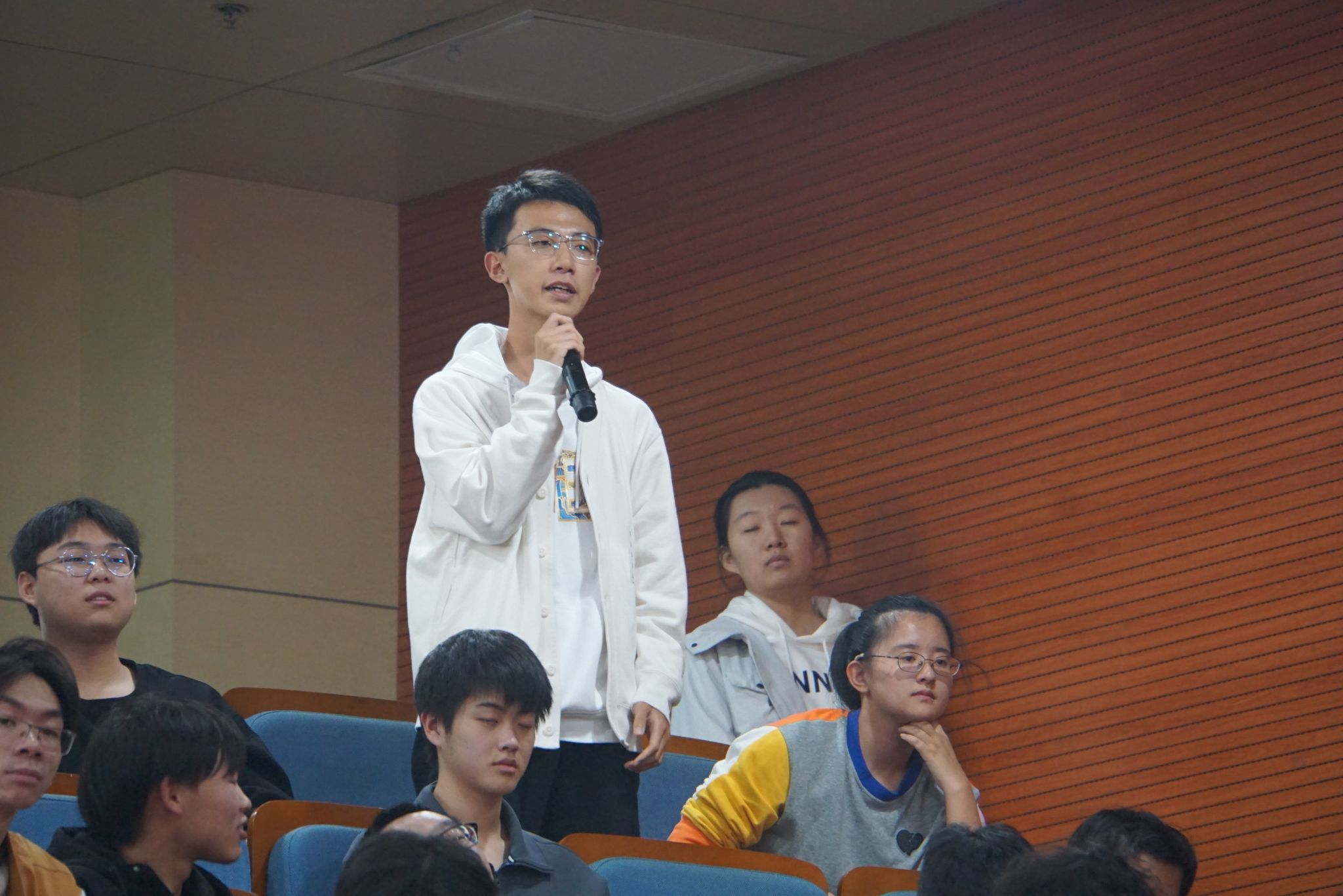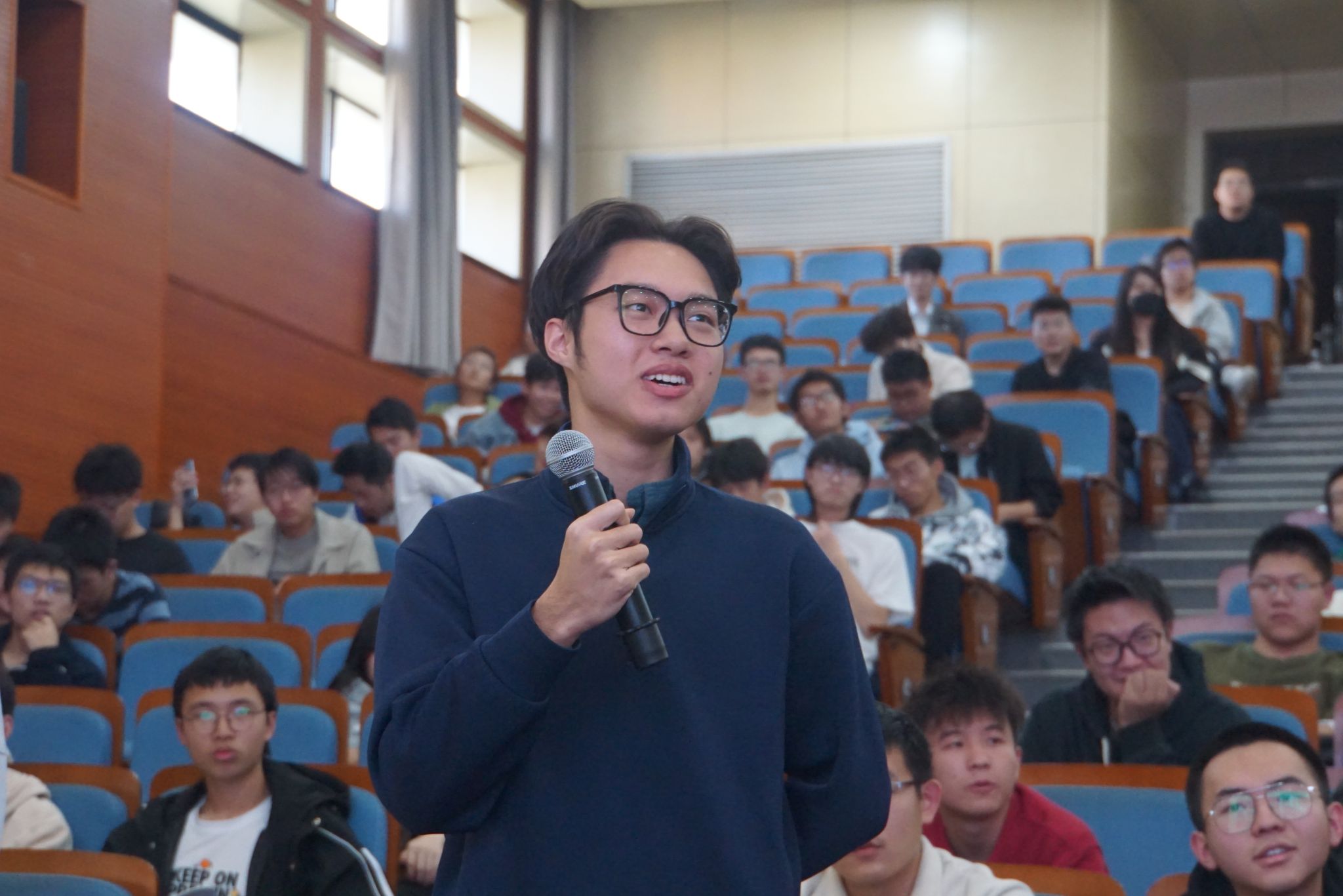 讲座尾声,同学们踊跃与院士交流,就量子计算、量子通信等前沿科学问题请教,俞大鹏以渊博的学术素养和高瞻远瞩的国际视野为同学们一一讲解,为同学们带来了一场思想的盛宴与智慧的启迪。