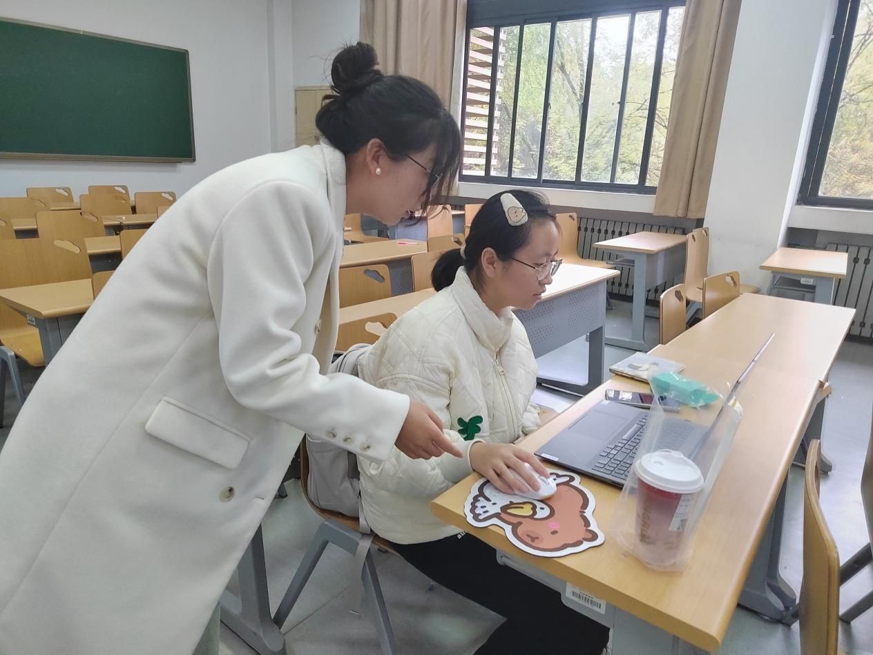 接下来,陈波安将讲解内容接轨至校园海报制作,详细讲述了招募类、活动宣传类等海报的制作方法,并对使用的工具和软件进行了概述。随后她对参与培训的员工干部们进行了点对点的讲解指导,结合自身丰富的海报制作和软件使用经验,耐心细致地解答了同学们在实操过程中出现的各种难题,现场气氛热烈而融洽。