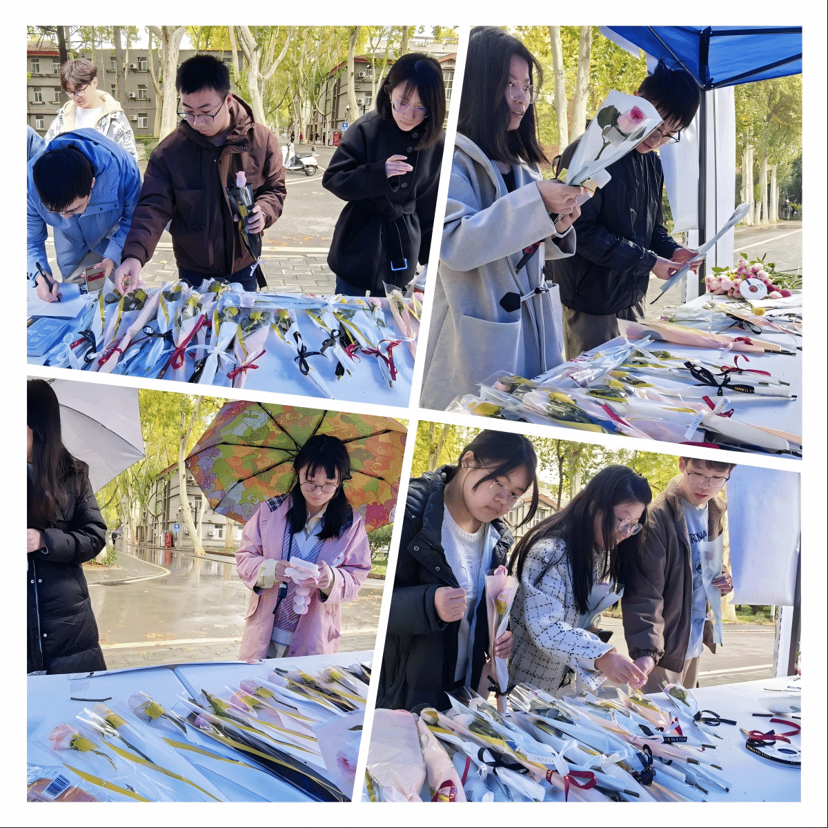 本次活动主题是用快递纸箱兑换鲜花,在初冬的清冷里,鲜花含苞待蕊,包裹着春天的绚烂,装饰了熟悉的街景。同学们纷纷清理宿舍,拿出购物未及时清理的快递盒换取鲜花,或是赠予好友、或是赠予爱人、或是装饰宿舍工位——抛下堆积的坏心情,与他人共赴一场开满鲜花的约定。