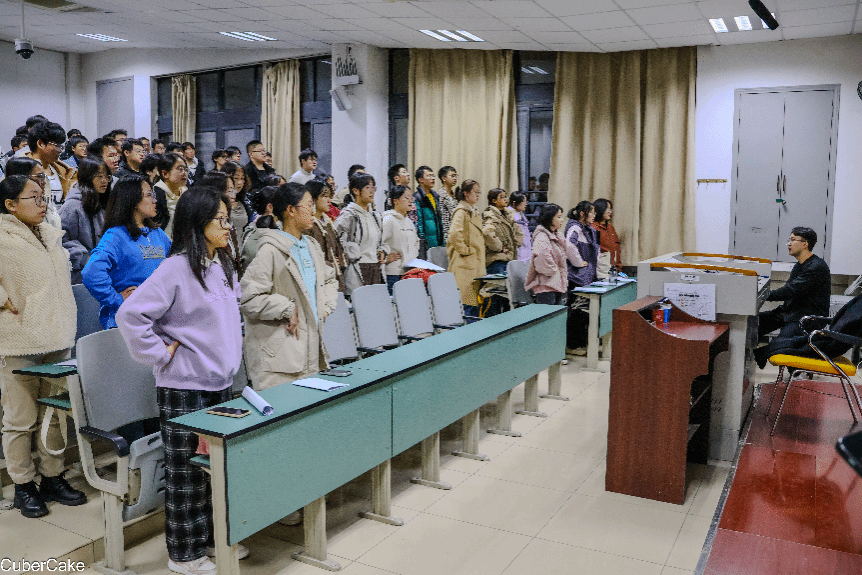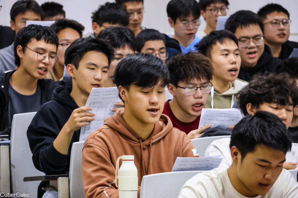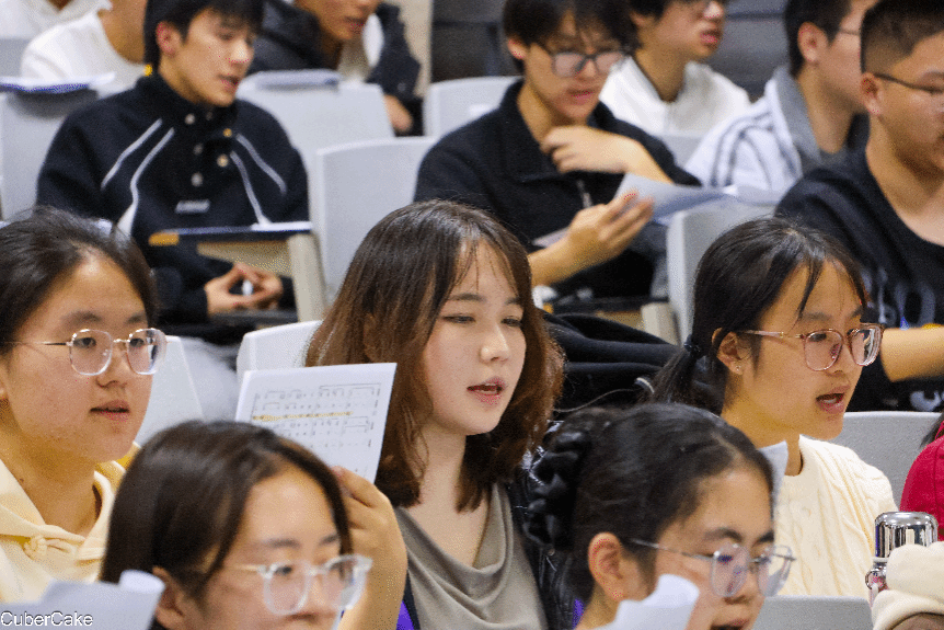 排练过程中,指挥李智凭借饱满的热情和生动的肢体语言,迅速调动了同学们的合唱热情。他通过声部划分、教授演唱技巧等帮助合唱团有效提升了演唱水平。经过四次紧张有序的排练,合唱团成员全勤参与,以饱满的精神状态、认真的排练态度,完成阶段性排练任务。