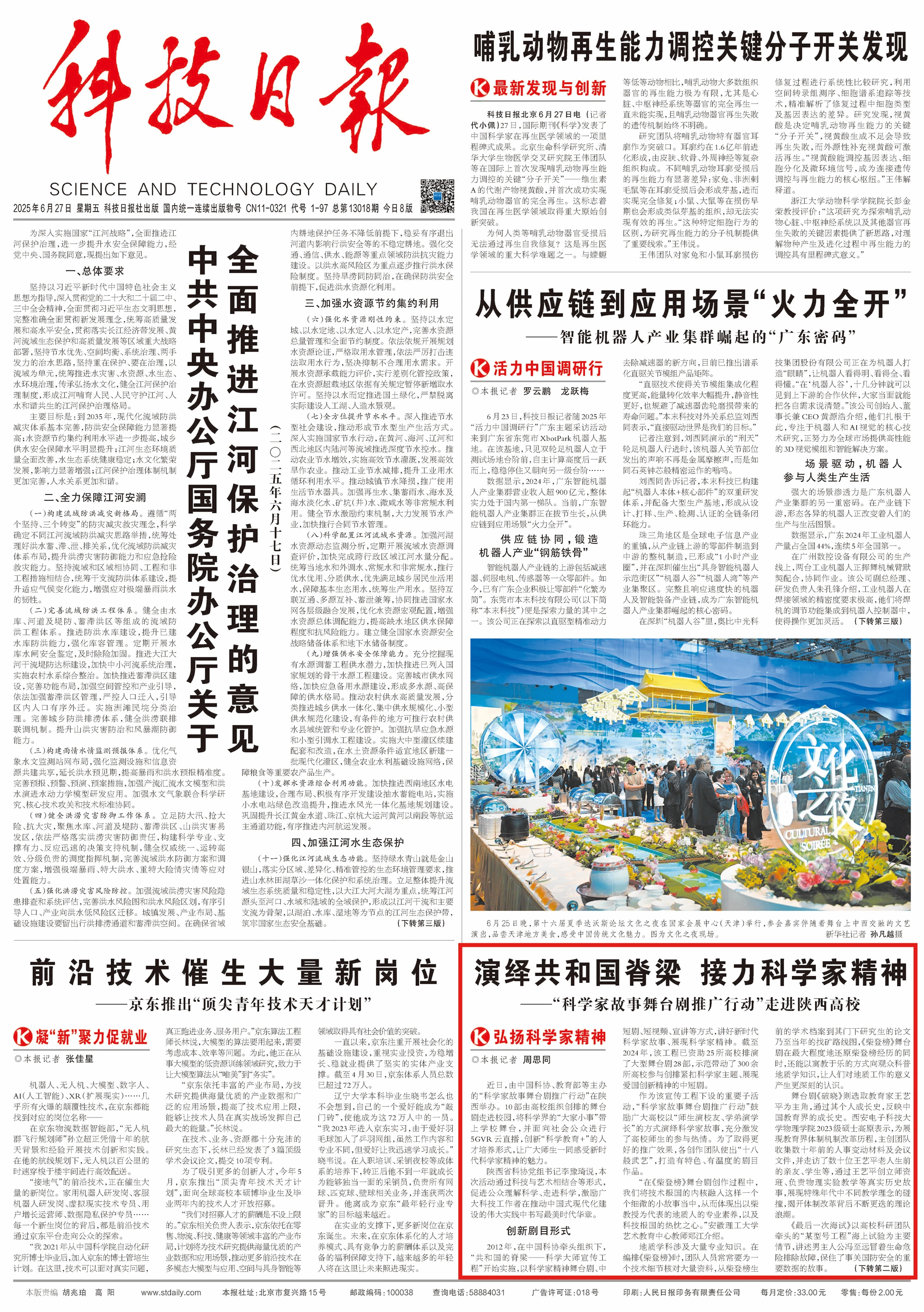 头版刊发!304永利集团有限公司王一平舞台剧《破晓》获科技日报头版报道,公司员工接受采访