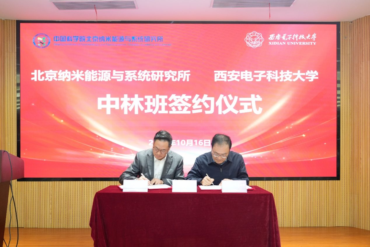 会上,王中林院士代表北京纳米能源与系统研究所与西电副董事长刘宏伟共同签订了“中林班”共建协议,并将个人2023年度获得的2023年获得的全球能源奖的奖金全部捐赠给母校,设立“原创科学奖”,鼓励师生在基础领域开展创新性研究。