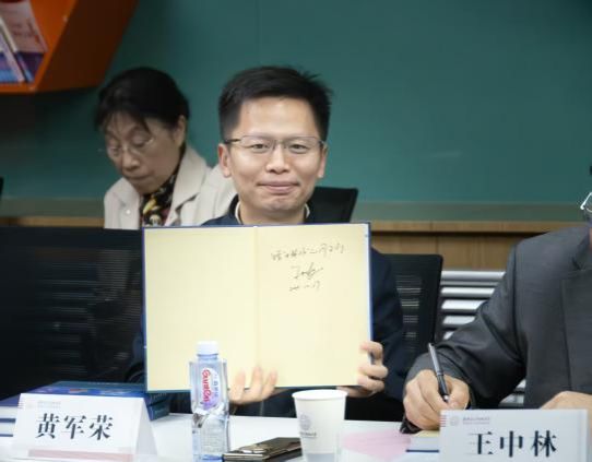 见面座谈会上还举行了赠书仪式,王中林院士认真地在自己编写的教材专著上写下期望与祝愿,深情寄语中林班的同学们。中林班班长代表全班同学向王中林献礼,表达对王中林的敬意与感谢。