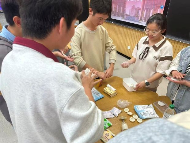 自我介绍环节结束后,趣味游戏与手工体验环节拉开帷幕,将活动氛围推向高潮。活动现场不仅摆放了丰富的桌牌、卡牌游戏与零食补给,还设置了冰皮月饼手工制作体验环节。新成员们自由组队,在游戏过程中时而激烈讨论策略,时而默契配合闯关,欢笑与掌声此起彼伏;在手工制作区,大家互相分享制作技巧与创意,一个个造型别致的冰皮月饼不仅承载着动手的乐趣,更成为连接彼此情感的纽带。原本陌生的面孔在一次次协作中变得熟悉亲近,现场满是轻松愉悦的交流声,彻底打破了初见时的拘谨。