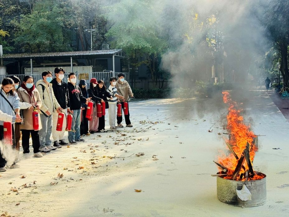 师生们在认真观摩演示后,分组有序地进行了实操练习。大家纷纷拿起灭火器,按照所学步骤,尝试进行灭火操作。