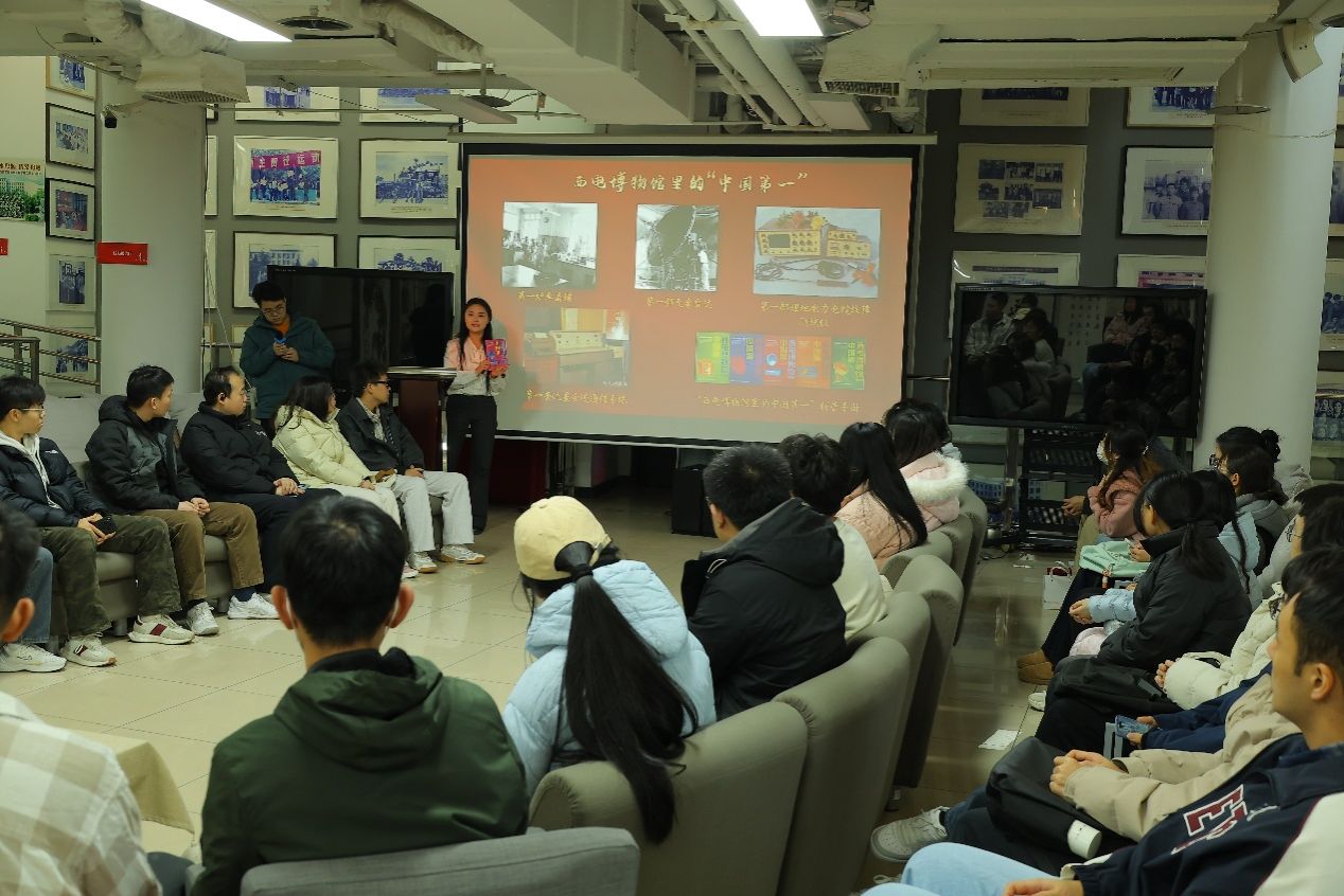 集团“时代之声”研究生宣讲团、304永利集团有限公司代表汪嘉怡以西电博物馆展品为依托,向大家介绍了中国第一台毫米波通信机的诞生历程,生动再现了上世纪八十年代以肖景明教授为代表的西电科研工作者如何面对国外技术封锁,立足国家通信事业急需,开展自主创新的奋斗故事。肖景明教授团队在设备简陋、资料匮乏的条件下,坚持在雨天爬上主楼屋顶进行信号测试,在黄河岸边搭帐篷开展野外实验等真实细节,让在场师生深切感受到老一辈科研工作者“甘坐冷板凳”的执着精神。
