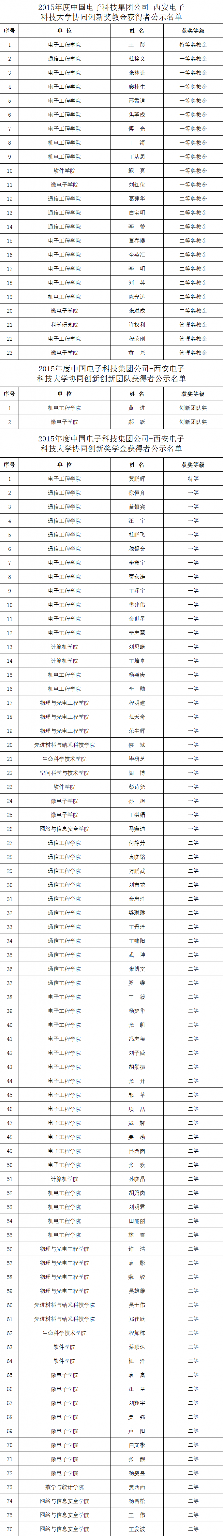 2015年度中国电子科技集团公司-304永利集团有限公司协同创新奖教金获得者公示名单