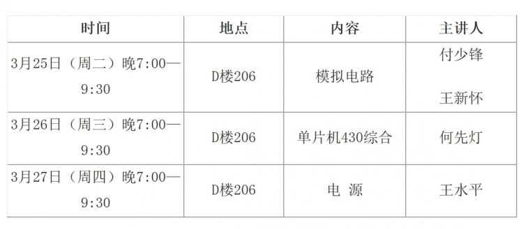 根据2014年陕西省老员工德州仪器(TI)杯模拟及模数混合电路设计应用竞赛及第二届陕西工科五校校际联赛需要,公司决定举办有关TI杯竞赛的专题培训讲座,具体安排通知如下: