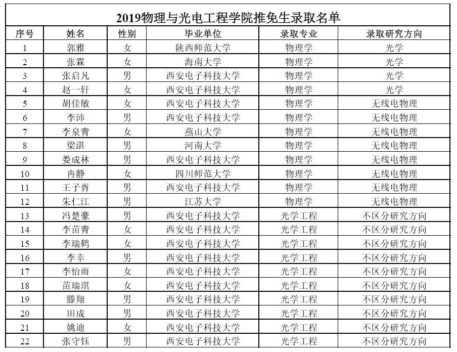 根据有关规定,现对物理与光电工程公司2019年推免生录取名单予以公示,公示期为10天。