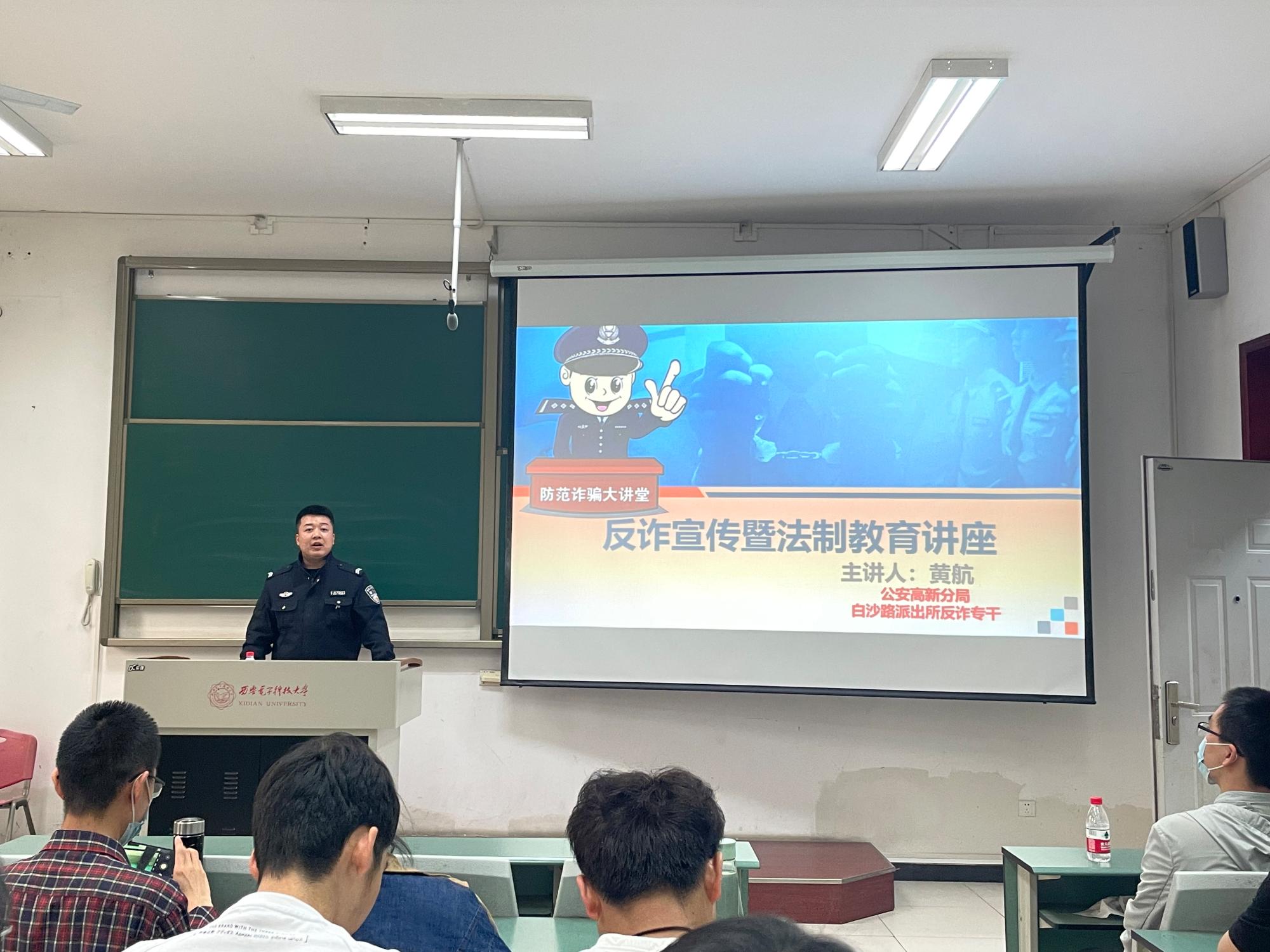 (通讯员:史卓圆)为提高同学们安全防范意识,了解网络诈骗的危害和主要手段,增强对电信网络诈骗的犯罪的识别和应对能力,4月20日,304永利集团有限公司邀请公安局高新分局白沙路派出所反诈专干黄航警官在北校区西大楼1区105教室,进行“反诈宣传暨法制教育”为主题的防诈骗知识讲座。在讲座中,黄警官一边向员工发放防范电信诈骗宣传页,一边围绕“什么是电信网络诈骗”、“电信诈骗的受害群体和危害”等问题进行细致讲解。同时,黄警官...